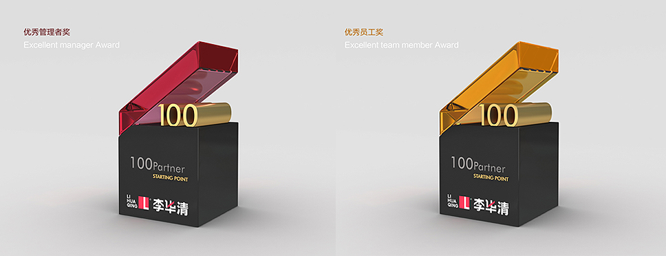獎杯的階梯是由下方的100作為支撐,象征平臺的發展和進取離不開100位合伙人的共同努力和付出。