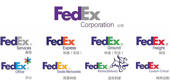 像聯邦快遞一樣,在品牌家族形象一致的情況下通過色彩建立業態的區隔,這樣品牌就能通過重復的傳播不斷積累品牌資產,各業態循環賦能,使品牌價值最大化。