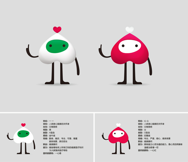 人類身心健康的關懷者是他們的定位;出生地就在云南昆明;性別分化適應一心堂未來業態布局與發展;性別、血型、星座影響著他們的性格;初始職業設定是健康顧問,一心堂上下所有員工都可以是健康顧問,當然,未來他們還可以靈活延伸出更多身份角色;并且,他們都擁有幫助人們身心健康的超能力。