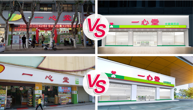 所以各業態的終端形象識別設計也遵循著集團業態品牌戰略統一性原則,建立藥店門頭與集團其他業態門頭之間的品牌戰略同盟關系。