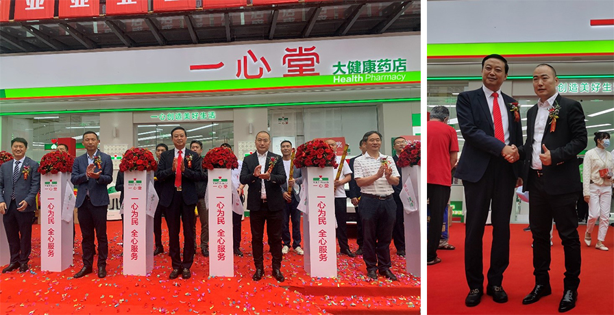 2022年9月23日一心堂全新品牌旗艦店亮相昆明,阮鴻獻(xiàn)董事長(zhǎng)與李華清董事長(zhǎng)共同為新店剪彩